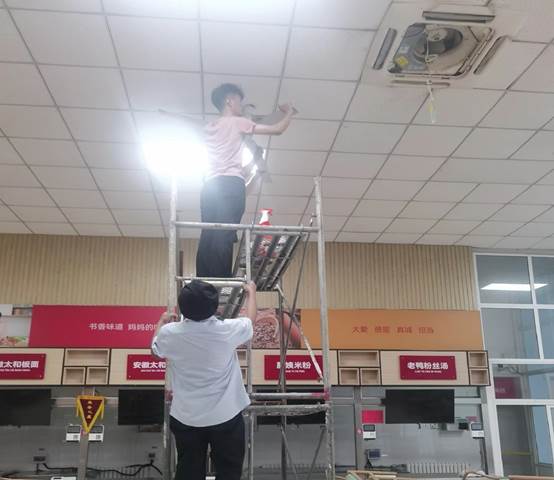 做好食品安全衛(wèi)生保障工作。開展食堂衛(wèi)生環(huán)境大掃除,對(duì)加工場(chǎng)所、設(shè)備設(shè)施、餐廚工具等進(jìn)行清潔和消毒,檢修、維修設(shè)施設(shè)備。全面檢查原材料進(jìn)貨查驗(yàn),落實(shí)索證索票及外觀查驗(yàn),做到來源可追溯。落實(shí)食品從業(yè)人員管理制度,確保從業(yè)人員規(guī)范上崗。做好校園環(huán)境衛(wèi)生和公共場(chǎng)所的通風(fēng)換氣,及時(shí)清運(yùn)垃圾,全面清除衛(wèi)生死角,創(chuàng)建文明整潔的校園環(huán)境。