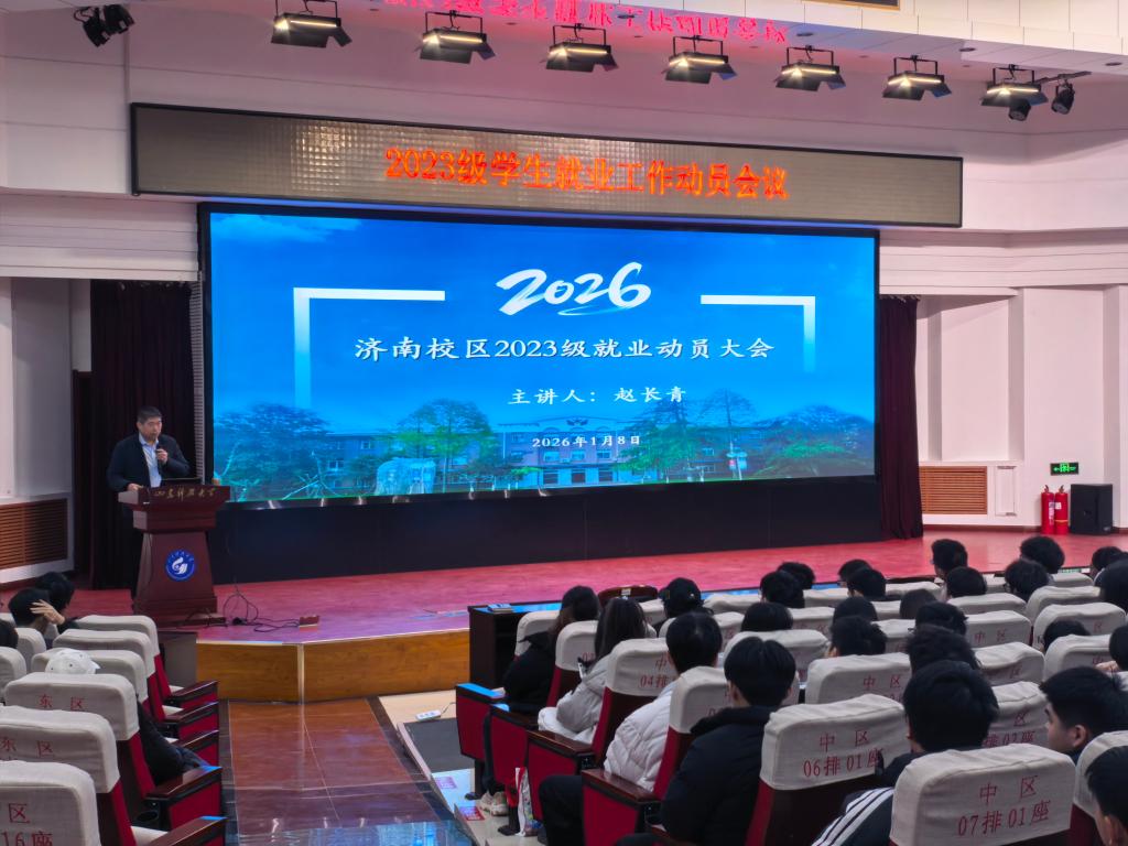 為幫助2023級(jí)學(xué)生精準(zhǔn)把握當(dāng)前就業(yè)形勢、科學(xué)規(guī)劃職業(yè)生涯,扎實(shí)做好2026年關(guān)鍵階段的就業(yè)準(zhǔn)備工作,1月8日,濟(jì)南校區(qū)組織召開2023級(jí)學(xué)生就業(yè)動(dòng)員會(huì)議,校區(qū)學(xué)團(tuán)工作部副主任趙長青為全體2023級(jí)學(xué)生作專題動(dòng)員講座,學(xué)生家長通過線上渠道同步參會(huì)。動(dòng)員會(huì)由2023年級(jí)組長王景波主持。