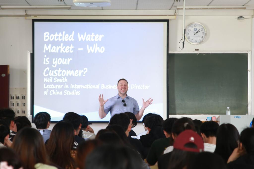 講座伊始,Neil Smith聚焦市場競爭與客戶需求,引出本次教學(xué)主題——了解瓶裝水定價背后的經(jīng)濟學(xué)。以深入淺出的方式為同學(xué)們剖析商品競爭決策的三大關(guān)鍵要素:價格、產(chǎn)品特征與品牌影響力。課堂上,他選取兩款不同品牌牙刷作為鮮活案例,對比產(chǎn)品定價策略、功能性差異以及品牌口碑效應(yīng)。