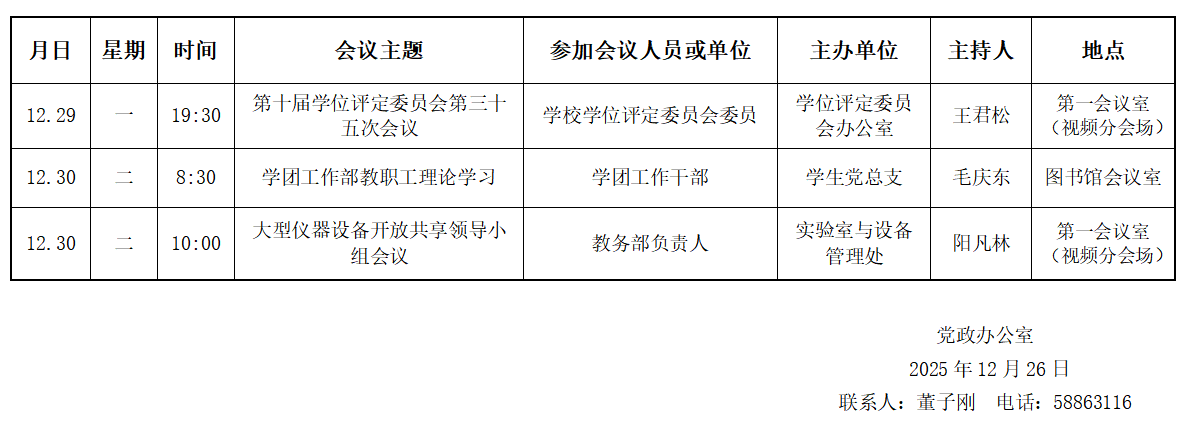 濟(jì)南校區(qū)第十八周會(huì)議安排