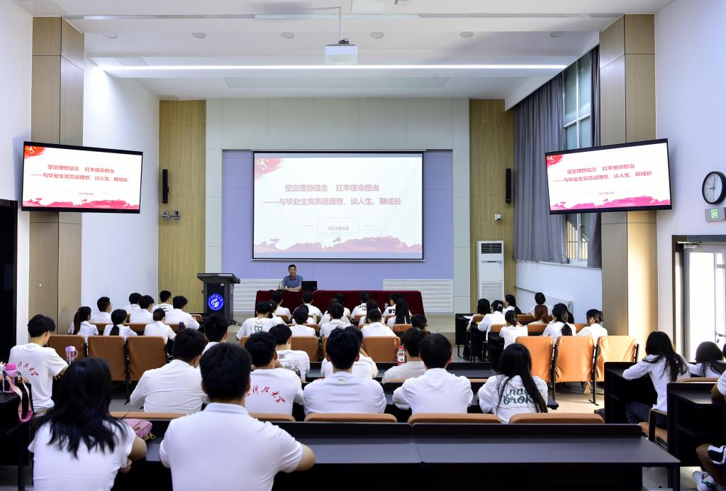 為進(jìn)一步推動(dòng)黨紀(jì)學(xué)習(xí)教育走深走實(shí),加強(qiáng)畢業(yè)生黨員教育,激勵(lì)廣大畢業(yè)生黨員在新征程上堅(jiān)守初心、勇?lián)姑?、再?chuàng)佳績,6月18日,濟(jì)南校區(qū)黨委常務(wù)副書記梁賽江為2024屆畢業(yè)生黨員講授題為“堅(jiān)定理想信念 扛牢使命擔(dān)當(dāng)”的專題黨課。